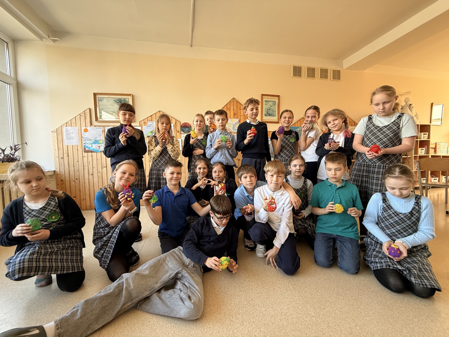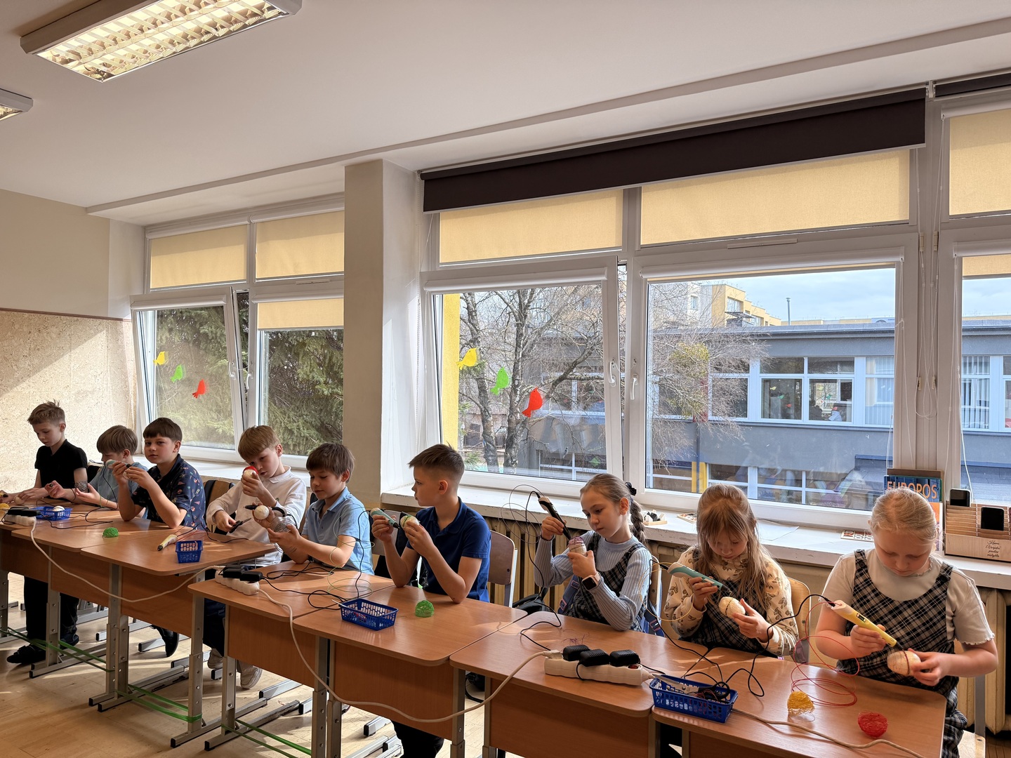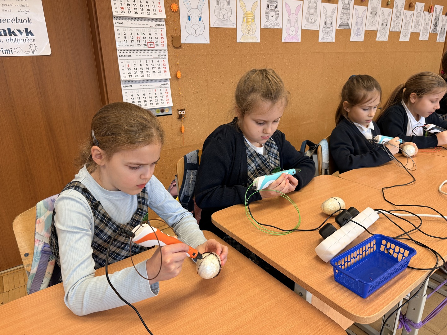 Prieš Velykas trečiokai išbandė darbą 3 D rašikliu.  Mokiniai pasigamino velykinį margutį arba krepšelį jiems sudėti.
